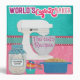 Preserve your family recipes in this fun recipe binder. A bright pink and teal blue background with a mixer, a jar of sourdough starter, measuring cups, and a freshly baked loaf of bread, with the words: World's Cutest Baker.