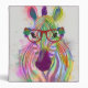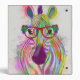 Cette impression d'aquarelle présente un portrait coloré d'un zèbre en lunettes orange ornées de fleurs | Par Fab Funky. ID d'image : 192221D