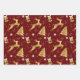 Classic 3 Colour Gold Christmas Reindeer Pattern Wrapping Paper Sheet