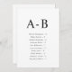 Classic Alphabetical Wedding Seating Chart Card