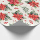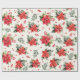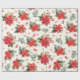 This charming Christmas wrapping paper features a vintage design of red poinsettias nestled among red berries and greenery.