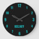 Classic and Elegant Black and Neon Turquoise Name Large Clock