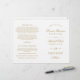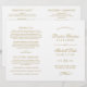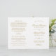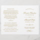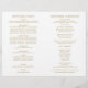 Warm antique gold script and refined serif typography present "The Wedding Of" on a clean white background for a timelessly elegant ceremony program. A delicate gold scroll flourish at the base adds a graceful finishing touch. Inside pages are fully customizable for your bridal party, ceremony order, and a personal thank you message on the back cover. Programs are printed on text-weight paper and arrive flat, requiring a simple center fold.