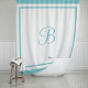 Add classic elegance to your bathroom with this stylish monogrammed shower curtain. This sophisticated white shower curtain is framed with a contemporary hotel chic layered border design. Personalize the script monogram letter with your first or last name initial. Aqua blue and white colour scheme. Please shop our store for additional colour options.