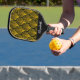 This stylish pickleball paddle features a classic Art Deco design in gold and black with a custom name on the base. A classic pattern with white text, you can edit the monogram to personalize it by using the editing tool in the listing. It's a fun, stylish, and elegant gift for a pickleball player.