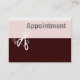 Classic custom business card template design with scissor and swirls for artists, teachers and those who use scissors for work or tool . Design comes with appointment option on the back.. A trendy scissor design illustration for the teacher, artistic women, and craft diva goddess. Great label to include in your handmade items. Pink , brown and white.