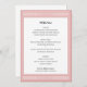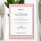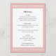 Create your own personalized table menus for a special event. Classic typography and a Greek key border add timeless elegance to your celebration — a geometric, maze-like pattern, inspired by ancient Greek and Roman art. This editable template lets you customize the text to perfectly suit your dishes or courses. Perfect for a formal dinner party, elegant lunch, brunch, birthday, wedding, or other event. Printed colours: pink and white, with dark grey lettering.