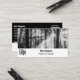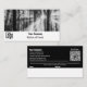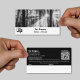 The Classic Black & White Custom Image Company Referral Card template is part of the Black & White Business Cards & Marketing Items Collection. The full-size card's front is dominated by a custom image with a white text area along the bottom for logo, name, and card type. On the back, a two-tone design organizes the space. Set against black with white text, the top features the company name and contact details. To the right is a QR code with a call to action to scan services. Below that are the terms, the title references of the parties involved, and space for handwritten names. Enter your QR code details, company name, and type of referral card. Then complete the titles and conditions with the company's contact information and logo, and an image that is either decorative or describes the service.