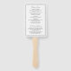 Elegant wedding program hand fan featuring your event details in serif and script fonts inside of a double border.