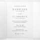 Classic all in one trifold wedding invitation with a simple and minimal black and white design with a combination of traditional serif fonts and an elegant script along with your date in a large format for a modern touch. The inside left panel has your additional details. Use the template to generate a QR code or remove it in the design editing tool. The inside right panel has your RSVP card and the back panel has your favourite photo. This elegant wedding invitation is great for a formal wedding.