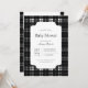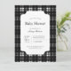 Classic, timeless black and white Robertson plaid check baby show invitation. Customizable font styles and layout, featuring a simple patterned backdrop with a clean, geometric plaid pattern. Perfect for unisex baby shower invites, baby boy shower invites, and rustic baby shower invites.