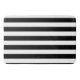 This black and white bath mat has a traditional pattern of horizontal stripes.