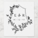Elegant wedding wine labels with a black shield crest on a white background adorned with black leaves, with your monogram and wedding date in black in the centre.