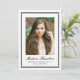 Celebrate your graduate’s milestone with this classic black and white photo graduation announcement, designed with a refined double border frame for a timeless and elegant presentation. The graduate’s portrait is centered within the clean, structured layout, with their name displayed below in graceful script, followed by their school and graduation year in traditional serif lettering. The back provides space for a personalized announcement message, allowing you to share their achievement and express your pride and gratitude with family and friends. Perfect for high school and college graduates, this formal photo graduation announcement offers a sophisticated and meaningful way to commemorate their accomplishment and mark the beginning of their next chapter.