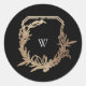 classic black gold botanical motif monogram crest round sticker