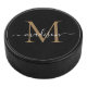 Classic Black Gold Monogram Girly Feminine Script Hockey Puck