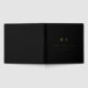 An elegant monogram wedding guest book design featuring your initials, names, and wedding date luxe gold foil lettering on a rich black background. Add additional custom text to the spine.