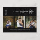 This save the date postcard features an elegant modern minimalist style of a three (tri) photo collage with a modern calligraphy of the wording "Save the Date" and elegant Serif fonts for a clean minimalist and modern look on a black background, which is a beautiful way to inform about your upcoming wedding. Announce to your family and friends you are getting married with this save the date postcard and add a personal touch with beautiful pictures of you and your soon-to-be better half. The simplicity of this design adds a touch of elegance to your wedding. It works well with many wedding themes and definitely a great addition to your wedding. Just customize the names and wording in a few easy steps and personalize the postcard with your photo of the happy couple and replace the QR Code with yours.
