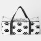 Classic Black Paw Print White Monogram Personalize Duffle Bag