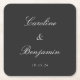 Classic Black Script Elegant Wedding Custom Name Square Paper Coaster