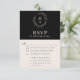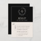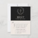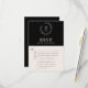 A tasteful and classic choice in wedding response cards, this design conveys a simple elegance in its text layout and classic style. A simple open laurel wreath of sketched leaves surrounds the monogram initial of the bride and groom. The elegant yet simple text template has meal selections that you can personalize with your desired entrees. This response card is a versatile choice for weddings at any season of the year and for any wedding venue, whether a solemn religious ceremony or a secular type affair at a banquet hall, winery, museum, restaurant, private club, or a rustic wedding outside in nature. It is available in a variety of popular colors (shown here in classic black and ecru) as well as many different paper types and weights.