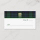 Dark blue, black, and green traditional Black Watch tartan plaid wedding reception place card, with lovely graphics of a gold tone Luckenbooth love symbol. Personalize by hand for your wedding reception. Matching Classic Black Watch Plaid wedding products are available.