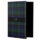 Great looking folio style iPad Air 2 case done in the traditional dark blue and green Black Watch tartan plaid pattern. Personalize the green one letter monogram to suit your needs. Makes a great personalized gift idea.