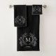 Classic Black White Floral Crest Initial Monogram Bath Towel Set