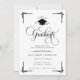 Celebrate a remarkable academic milestone with this classic black and white graduation invitation, designed with timeless elegance and formal sophistication. Featuring ornate gold script typography, decorative corner accents, and a graduation cap emblem, this invitation makes a striking statement for a high school or college graduate.