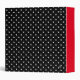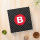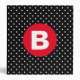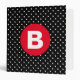Classic black and white polka dot pattern with big red circle in the centre to add your initial.