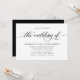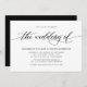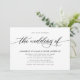 Simple, classic elegant wedding invitation features typography script in handwritten lettering ''the wedding of'' and details in bold capital lettering on a white background.