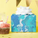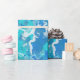 Vibrant classic blue and turquoise paint splatter patterned gift packaging.