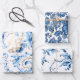 Classic Blue and White Florals Wrapping Paper Sheet