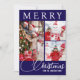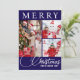 Spread holiday cheer this season with this modern yet classic blue and white personalized Christmas card, featuring three of your cherished family photos on the front. Adorned with the word "MERRY" across the top and "Christmas" in a classic script across the bottom alongside your family name. On the back, customize the message to share a heartfelt, editable Christmas greeting, perfectly tailored to express your unique holiday wishes. Add your first names below the message to add a personal touch, creating a keepsake that friends and family will treasure. This card is the perfect blend of tradition and personalization, making it an unforgettable way to spread holiday cheer.