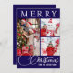 Classic Blue And White Merry Christmas Three Photo Holiday Card
