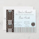 Custom designed baby shower invitation. Features baby blue and brown striped design, lovely baby blue bows and polka dots. Perfect for any mom to be's special day!