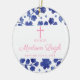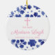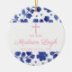 Classic Blue Floral Personalized Girl Baptism Ceramic Ornament