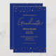 Welcome friends and family to join in the celebration of your graduate's impressive achievement with this modern and elegant invitation. The design showcases a handwritten script-style font spelling out "Graduate," set against a classic blue backdrop, adorned with festive faux gold confetti sprinkles.