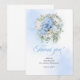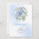 Boho wedding thank you card with blue hydrangea watercolor flowers and eucalyptus greenery, professionally printed by Zazzle on premium cardstock with crisp detail, rich color, and a smooth elegant finish.