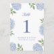 Classic Blue Hydrangea Flower Large Table Number