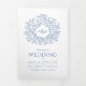 Classic blue monogram art story dedication wedding Tri-Fold programme