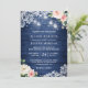 Classic Blue String Lights Floral Rustic Wedding Invitation
