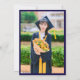 Classic Blue & White Script Graduation Photo Invitation