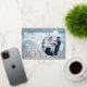 Make your family stand out this holiday season with our tranquil blue and white snowfall Christmas postcard. This design features a modern soft blue and white winter backdrop layered with elegant silver foil modern lettering. Showcase your favourite family photo inside a beautifully crafted ornament cutout. It's the perfect blend of cozy, classic, and high-end—a luxurious way to share your holiday cheer and best wishes for the New Year. Created by Simply Farmhouse Press.
