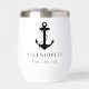 A classic nautical-themed thermal tumble for your boat that features a black anchor and rope and your boat's name and location in elegant script and typography.