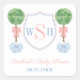 This classic favour / thank you sticker design features a simple 3 letter monogram crest flanked on either side by a handpainted topiary ball in a ginger jar planter adorned with pink floppy bow. Watercolor elements were painted by me onto 100% cotton paper and scanned into digital form. The crest shape is by another artist. This design would work equally well for a baby shower (where the baby's name has been announced) or for a wedding / couples shower.