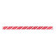 Thick and thin white stripes alternate on this bright red ribbon to make a candy cane-like pattern. The stripes are set an angle.