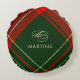 Classic Calligraphy Christmas Red Plaid Round Pillow