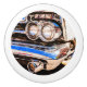 Classic american car of 1950th. Partial view of headlights, the front wheel and a bumper