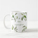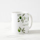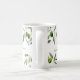 Classic ceramic mug with olive leaves and fruit and I love vegan food message created by Alan Skyrme.